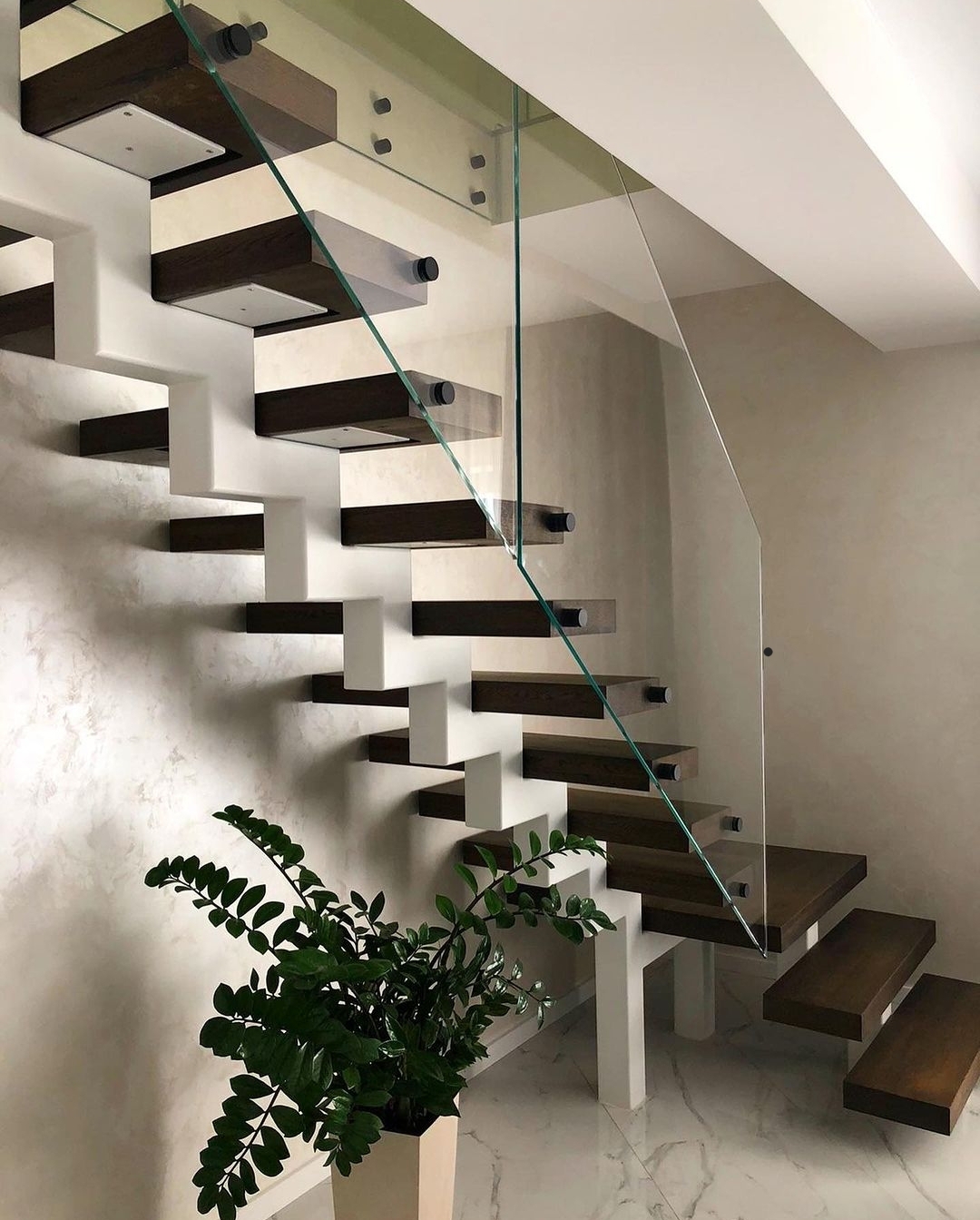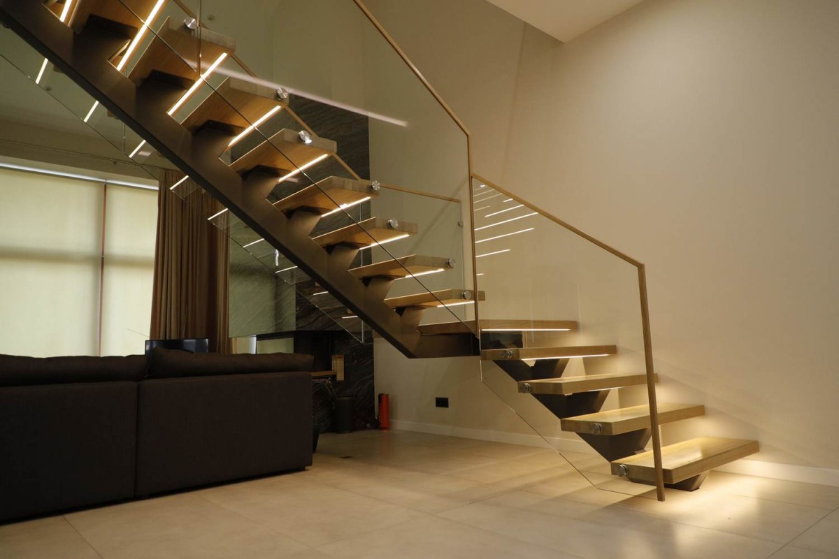 Лестницы на металлическом косоуре на второй этаж изготавливаются под индивидуальный проект. Металлический каркас для лестницы подбирается с учетом предполагаемых нагрузок и принятого стилистического оформления всего помещения. Также необходимо четко представлять, какой тип ограждения будет в Вашем проекте лестницы. Ограждение для лестницы может быть изготовлено из стекла, металла и дерева.
