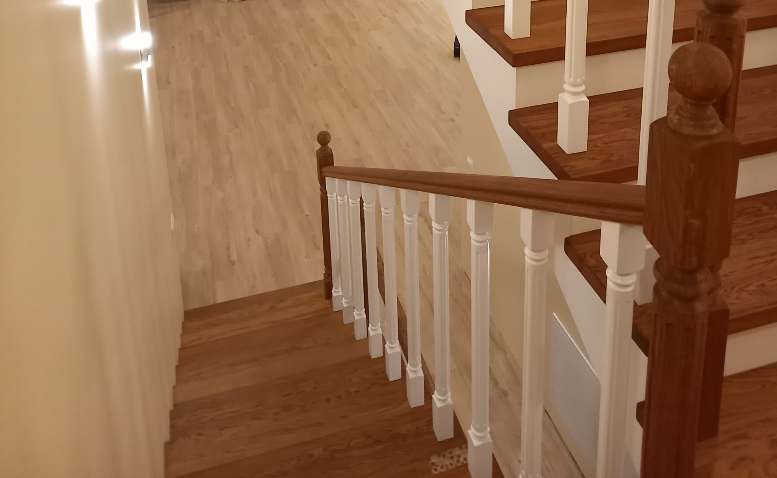 описание… Изначально лестница планировалась быть открытой, но потом решили использовать пространство под лестницей. Каркас лестницы изготовлен из профильной трубы 120*120*4. Опорные пластины толщиной 6 мм. Ступени для лестницы из лиственницы с покрытием бельгийским маслом. Ограждение из металла.